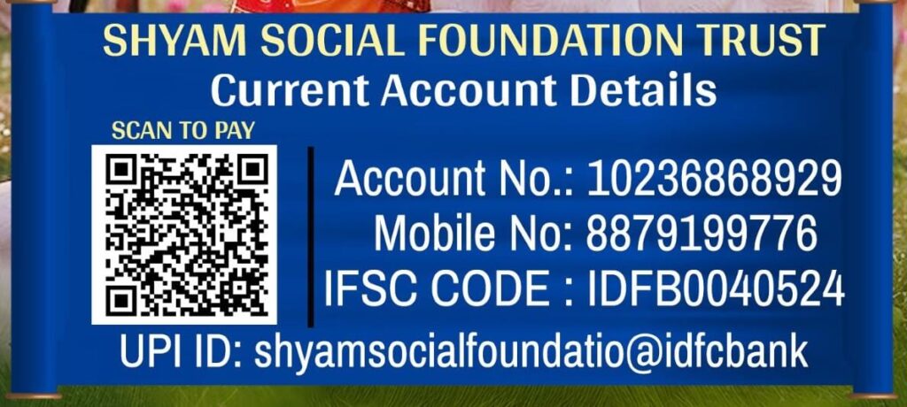 UPI ID: shyamsocialfoundatio@idfcbank
